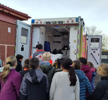 Ein Notfall? Kein Problem! Wir sind vorbereitet. Alle Dritt- und Viertklässler haben zuletzt im Sachunterricht 3/4 einen kleinen Erste-Hilfe-Kurs durchlaufen. Sie können einen Notruf absetzen, Wunden mit Pflastern und Verbänden versorgen und eine bewusstlose Person in die stabile Seitenlage legen. Highlight der Unterrichtseinheit war der Besuch eines Krankenwagens, den alle ganz genau anschauen durften. Vielen Dank an Familie Schumacher, das DRK Büchen und die weiteren fleißigen Eltern, die uns in den Klassen unterstützt haben.